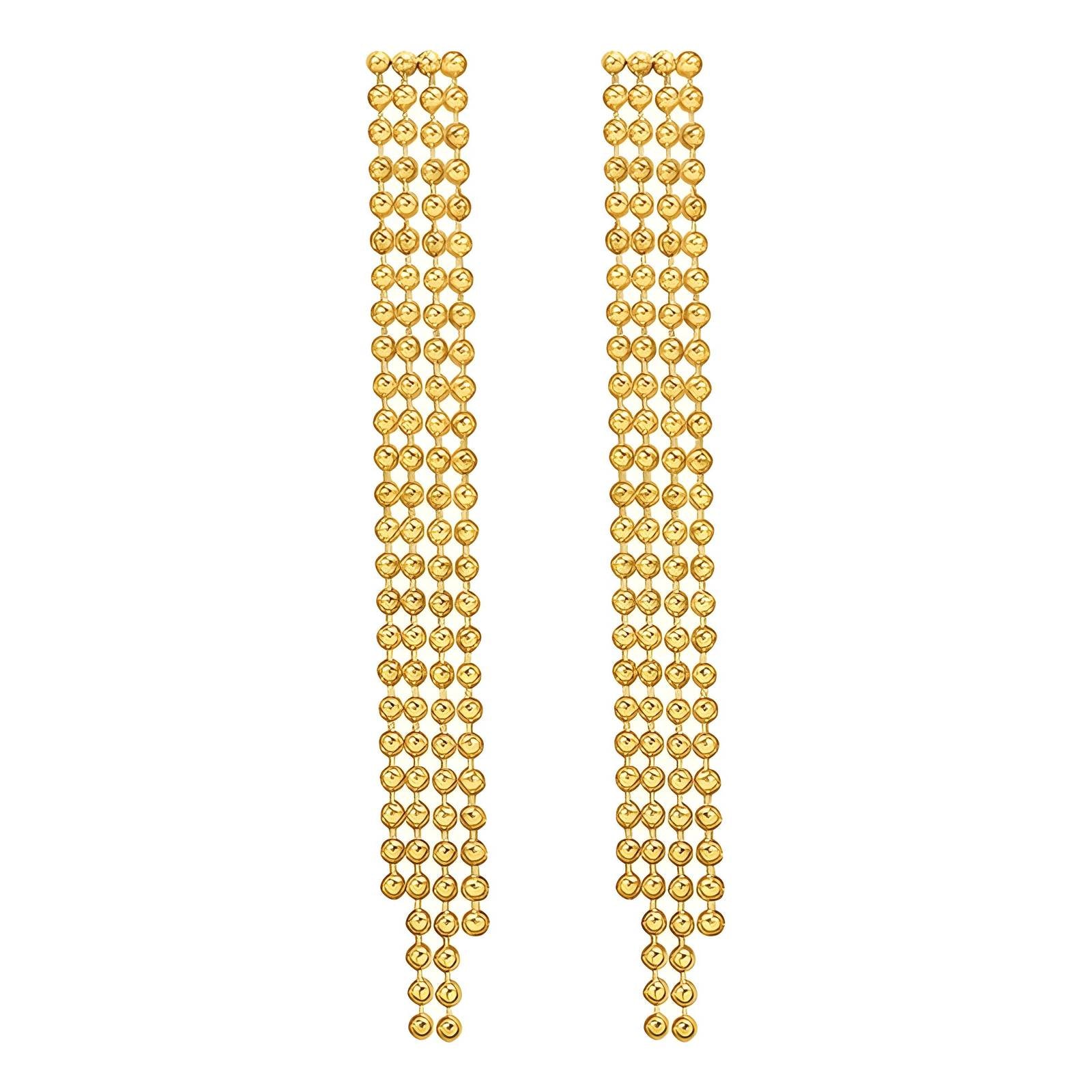 Elevate your style with the Filara Earrings — delicate gold strings that shimmer like rays of starlight. Their simple yet elegant design captures a soft grace, perfect for adding a subtle glow to any look. Lightweight and refined, these earrings bring a touch of beauty to your everyday wear.