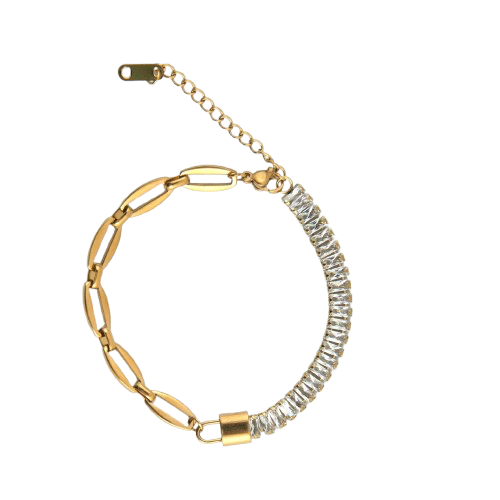 Elevate your style with the Mahara Bracelet, a delicate chain adorned with radiant rhinestones that sparkle elegantly with every movement. This refined accessory brings a subtle yet captivating shimmer, perfect for adding a touch of sophistication to any outfit.